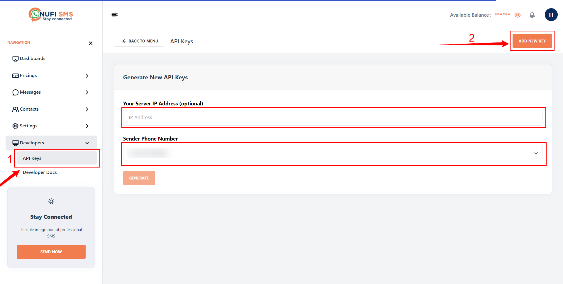 Before being able to use the APIs, users must first generate an API key from their account at https://nufisms.com/apis.